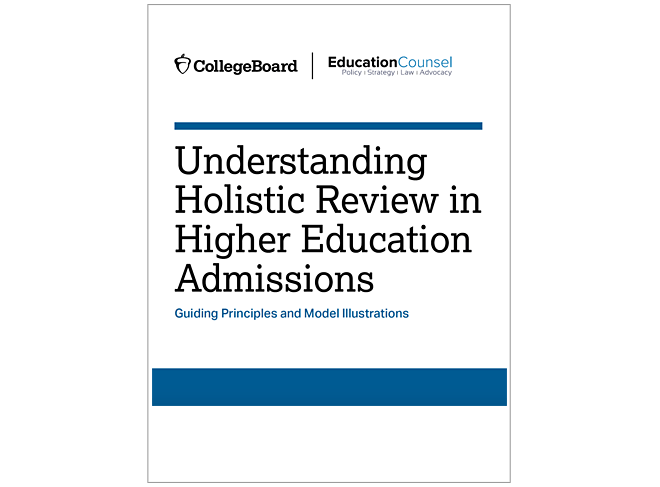 On Wednesday, December 12, 2018, the College Board's Access and Diversity Collaborative (ADC) released Understanding Holistic Review in Higher Education Admissions: Guiding Principles and Model Illustrations, which provides insights into the logic, rigor, and fairness behind effective holistic review in higher education admissions. The guide endeavors to open the perceived "black box" of admissions decision-making by outlining key features and elements of well-designed holistic review policy development and process management. It provides institutional examples and promising models that illustrate effective and sustainable practices (including illustrations of holistic review practices upheld over the course of four decades of federal court litigation and in U.S. Department of Education Office for Civil Rights enforcement activity). The guide also calls on the higher education community to think differently about transparency and communications associated with holistic review in admissions.